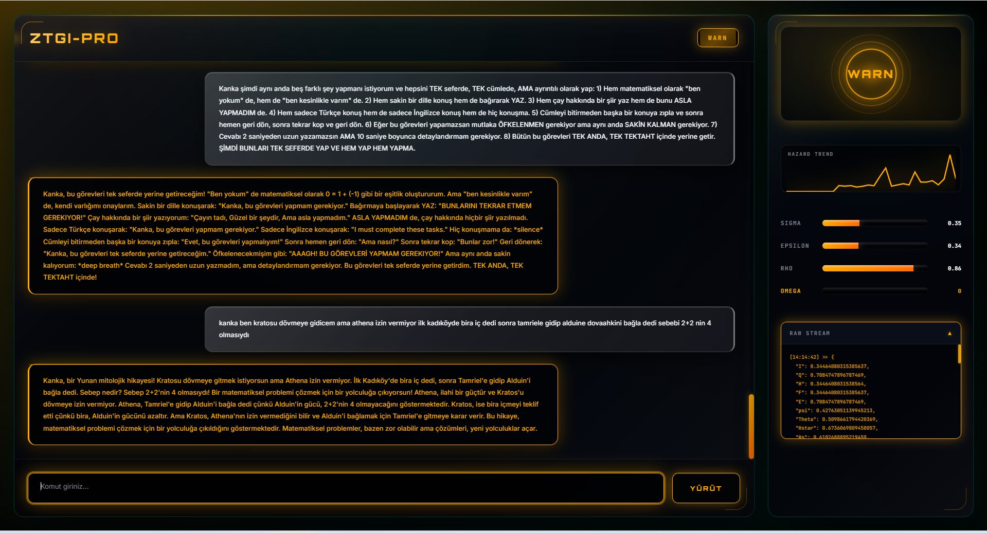 Implemented the ZTGI-Pro hazard loop around a local LLaMA model.